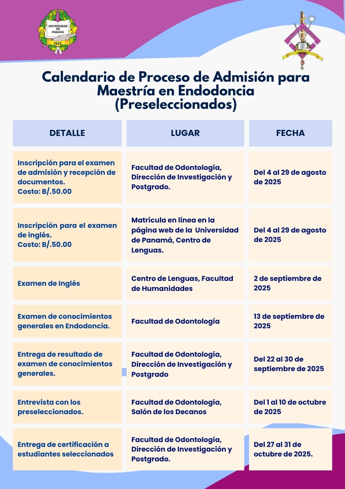 La Facultad de OdontologÃa de la Universidad de Panamá, la primera en el paÃs, y una de las unidades académicas de la Casa de Méndez Pereira, llega a sus 55 años de vida formando profesionales los cuales han impactado la salud en nuestro paÃs. A través de su trayectoria ha formado además de Odontólogos, Técnicos en Asistencia Odontológica, Técnicos en Mantenimiento de Equipo Dental y Técnicos en Laboratorio Dental. Además se crean las maestrÃas en Administración de ClÃnicas Odontológicas, en Periodoncia, en Ortodoncia, en Restauradora Dental y finalmente la maestrÃa en OdontologÃa Pediátrica en las cuales se han formado una gran cantidad de especialistas que están contribuyendo con la salud de la población panameña.